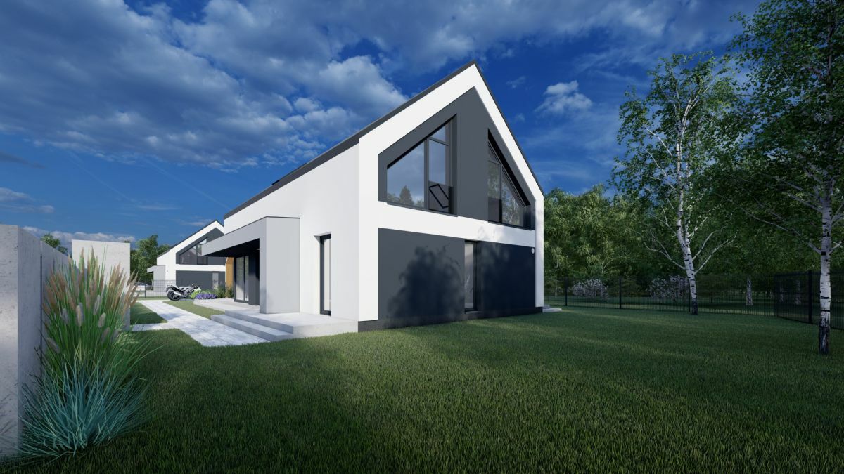 Stylowa i nowoczesna bryła budynku posiada niezwykle funkcjonalny rozkład pomieszczeń.